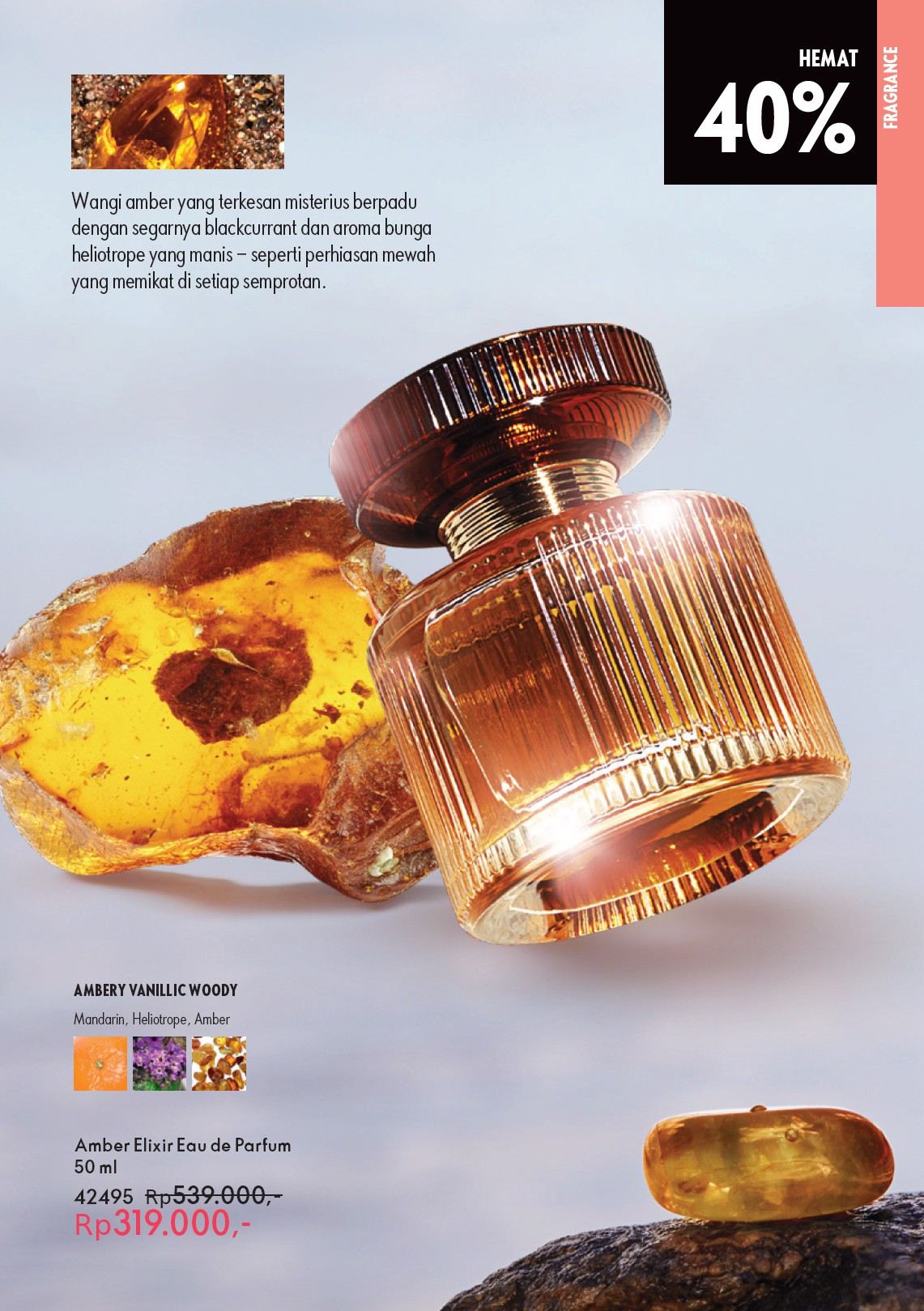 Amber Elixir Crystal Eau de Parfum - Selami dalamnya sensasi daya pikat dari eau de parfum yang dibuka aroma oriental floral mewah yang begitu segar dengan sentuhan eksklusif Baltic Amber accord, inti keharumannya menghadirkan nigella dan ditutup sentuhan brown sugar yang memikat. 50 ml.