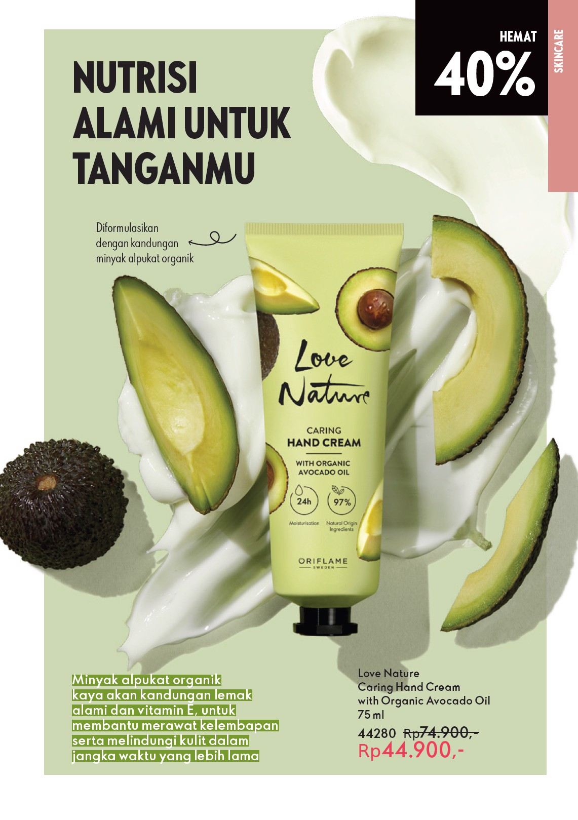 Kecantikan Oriflame Moisturising Hand Cream with Avocado oil - Krim pelembap tangan dengan infusi minyak avocado alami. Merawat kelembutan, keseimbangan dan kehalusan kulit. Membantu mengkondisi kulit kusam dan kering dengan kelembapan. 75 ml.