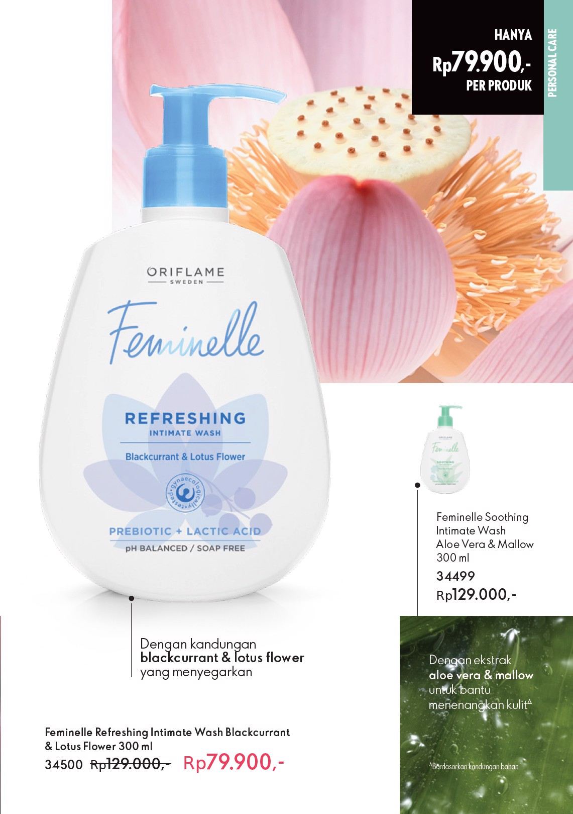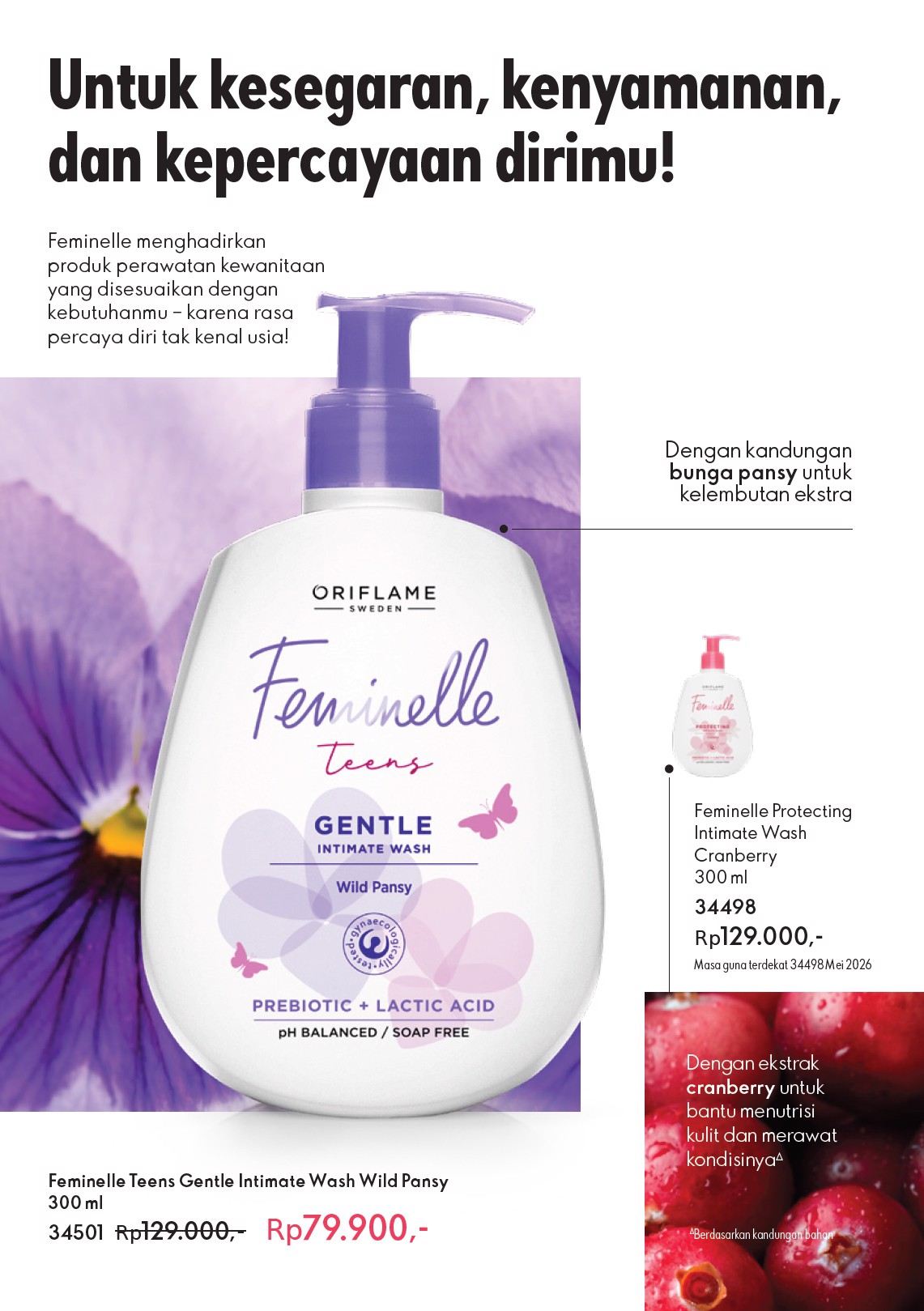 Kosmetik Oriflame Feminelle Comforting Intimate Wash - Nikmati segarnya percaya diri sepanjang hari bersama pembersih harian pH seimbang yang mengandung ekstrak orchid flower dalam aroma feminin yang menyegarkan. Diformulasikan secara khusus dengan lactic acid serta vitamin untuk membantu menjaga keseimbangan alami area intim Anda. 300 ml.